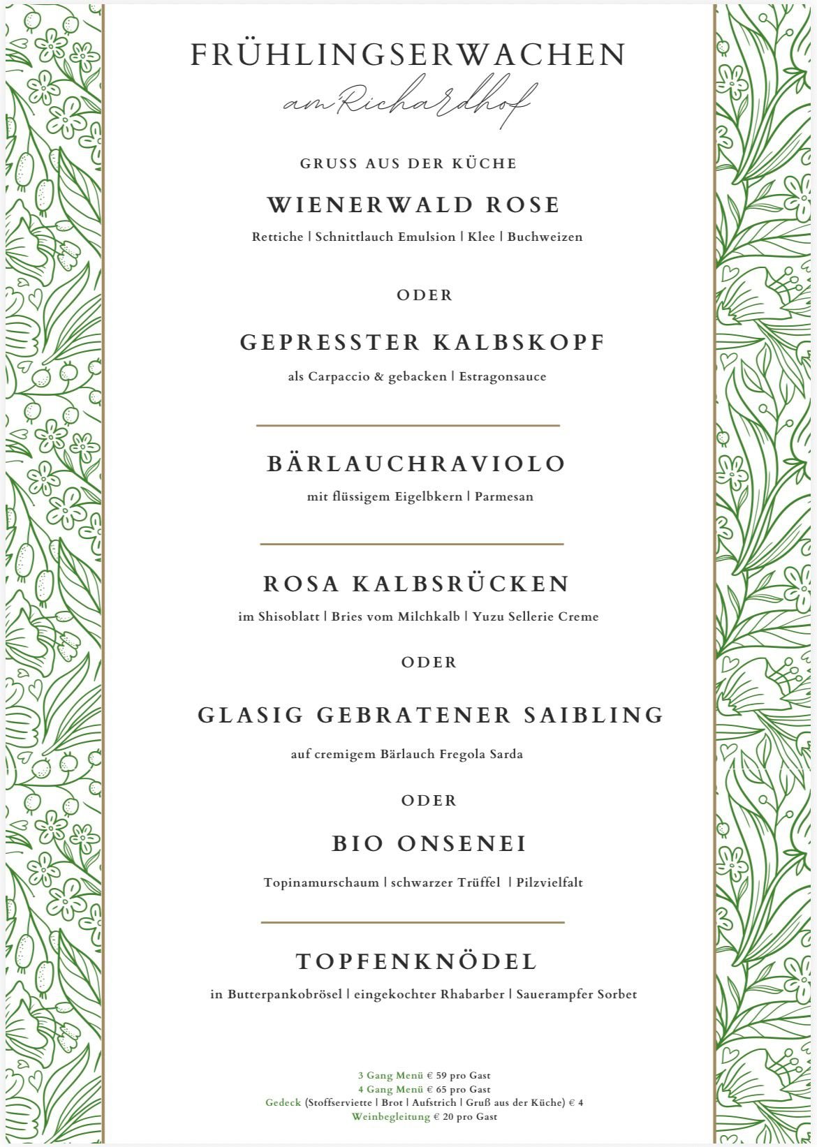 Ab sofort laden wir einmal im Monat zu unserem exklusiven Gourmet Menü am Richardhof ein.